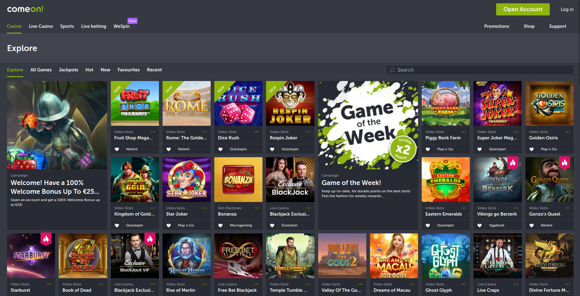 Jogos do Casino ComeOn: Grande coleção de jogos