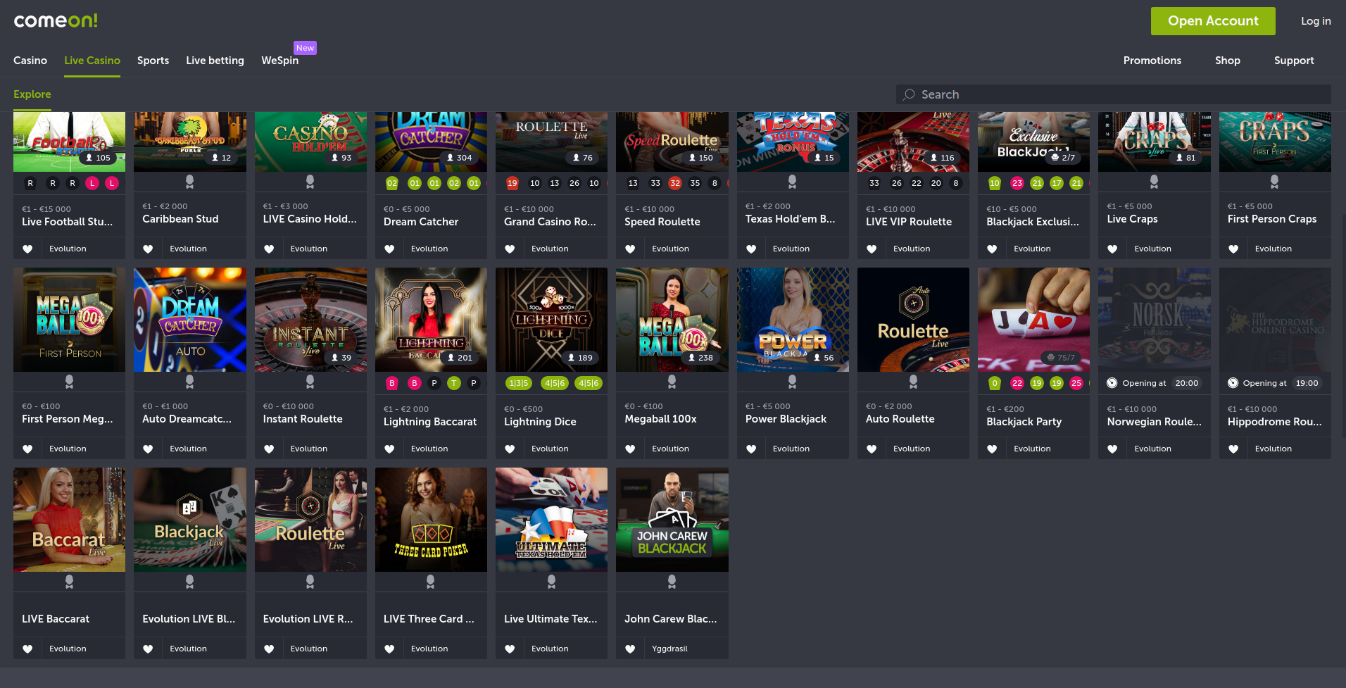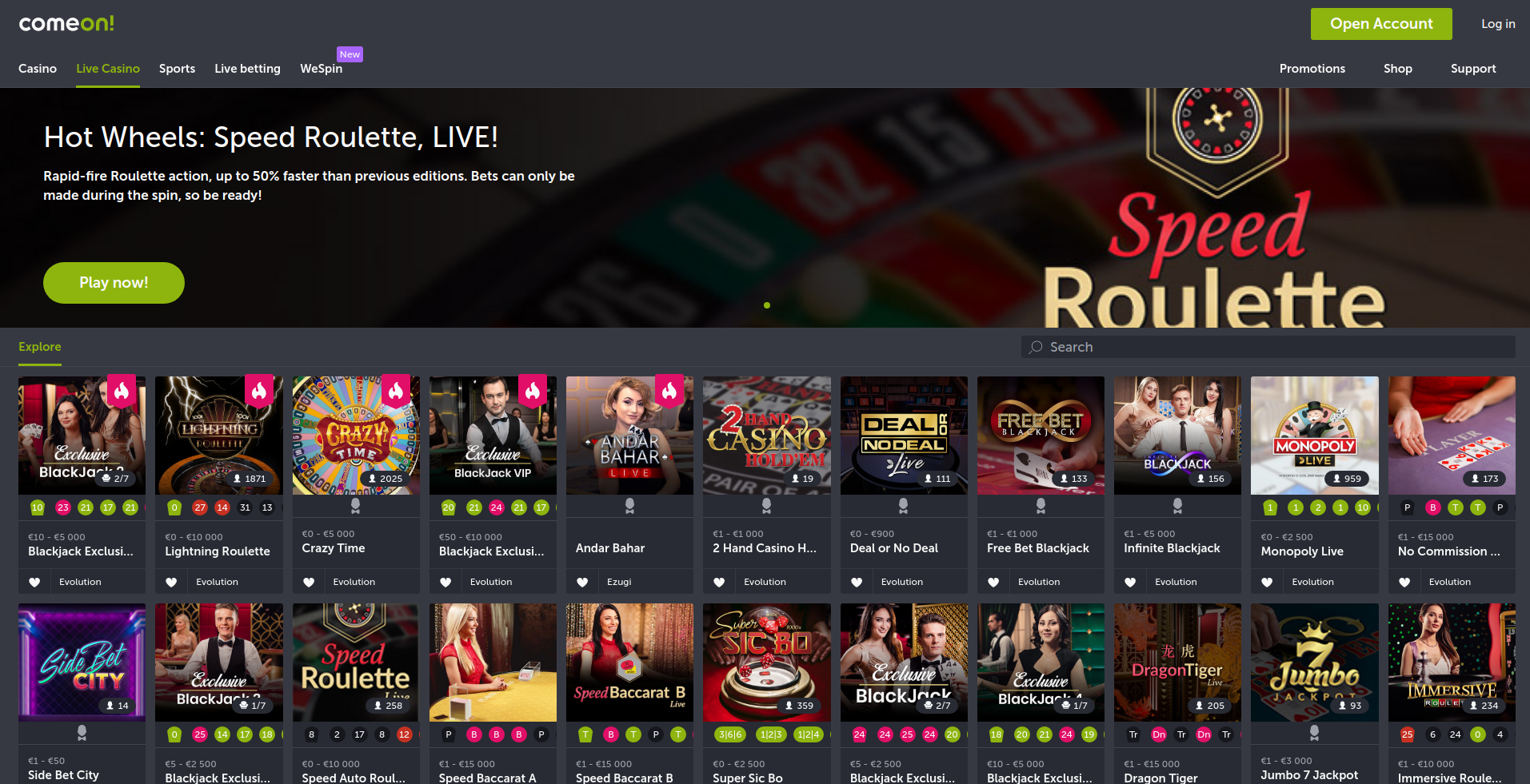 O ComeOn é um casino online com uma grande variedade de jogos. O casino oferece mais de 300 slots, e cada jogador tem a garantia de encontrar as opções mais adequadas para si. Se quiser jogar numa slot com um grande jackpot, estas podem ser facilmente encontradas no website. Se quiser jogar na slot de apostas baixas, também existem essas opções.