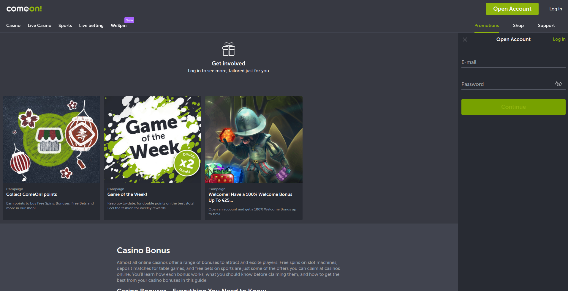 Bónus para os jogadores do ComeOn Casino
