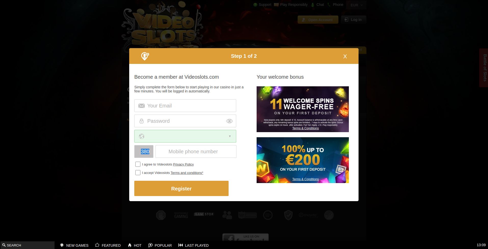 OcultarNew players are offered a 100% bonus of up to 1100 EUR + 250 Free Spins for a great start!