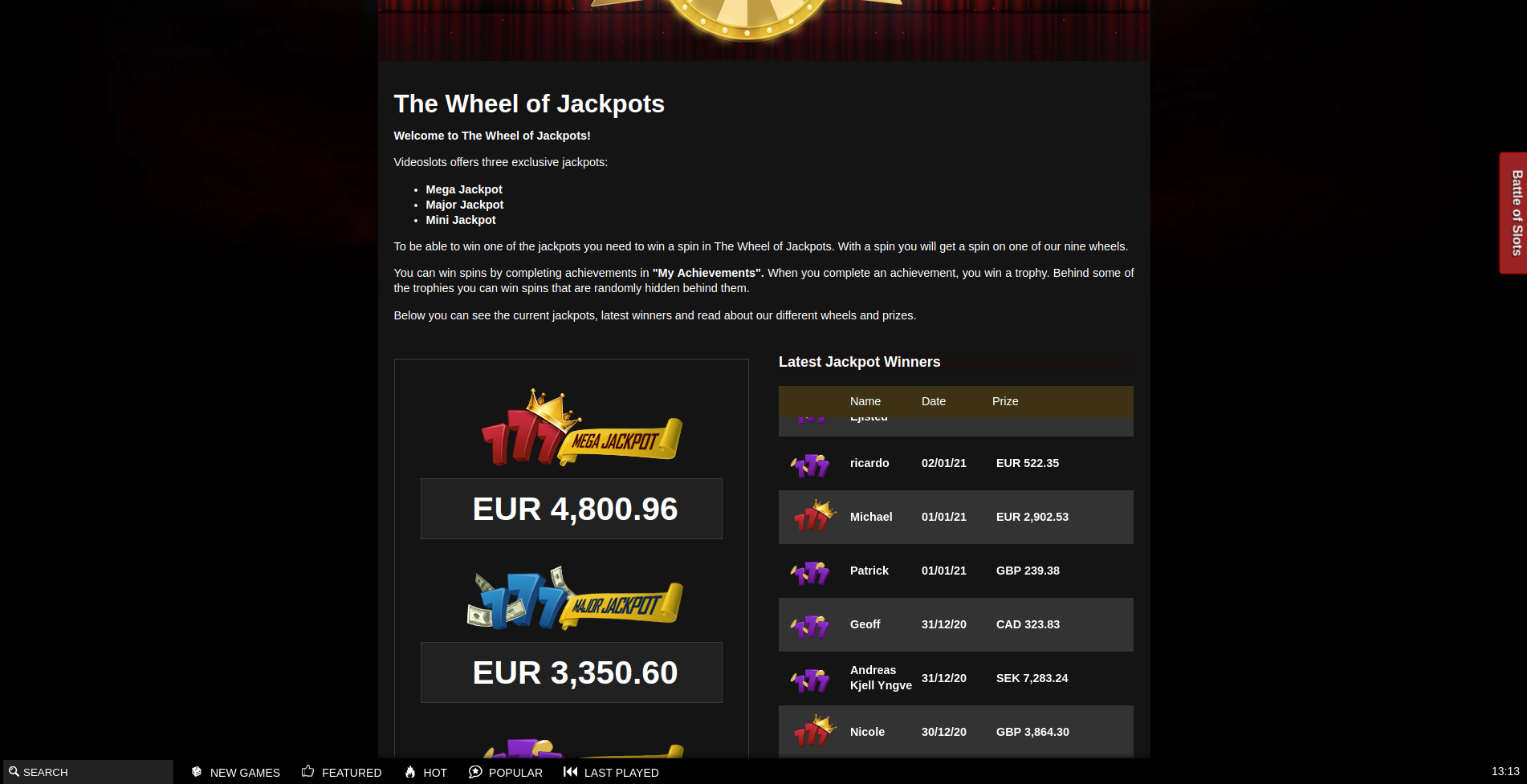 OcultarUse codes BIG2 BIG3 BIG4. Wagering is 35x. Min deposit is 15$.